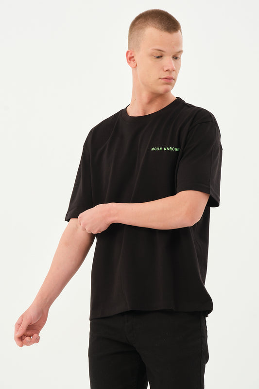 Moonmarcher Siyah Baskılı Beyaz Tişört